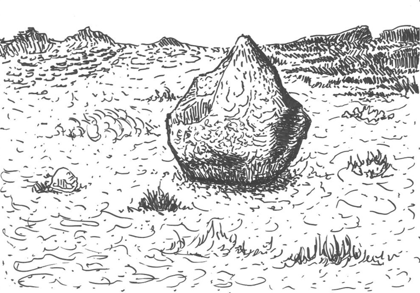 Soms ligt ergens in die woestenij een enorm geërodeerd stuk steen, een grotesk levenloos spektakel dat de passanten van zijn onsterfelijkheid probeert te overtuigen. Maar ze halen hun schouders op, slaan een kruis en weten dat niets voor eeuwig is op deze aarde.