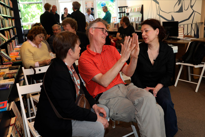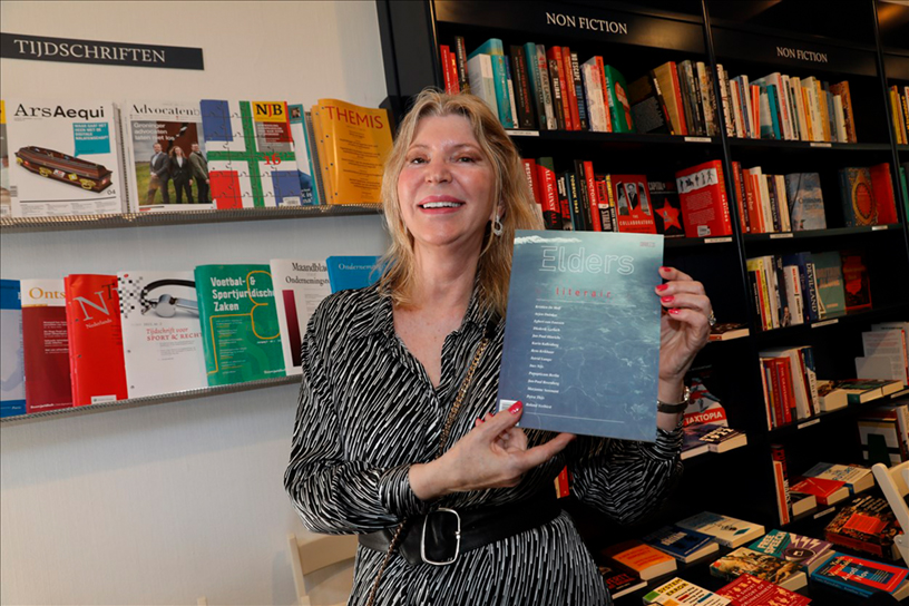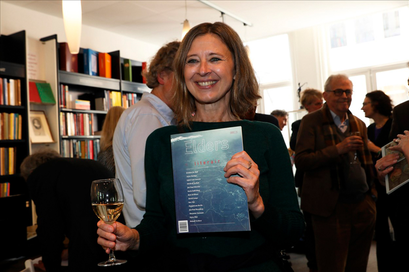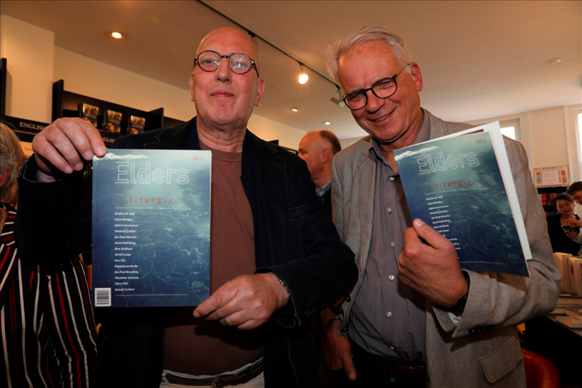 Elders nummer 1 is op zaterdag 13 mei gelanceerd in boekhandel Douwes, Den Haag. Met optredens van Kristien De Wolf (proza), Arjen Duinker (gedichten) en Art for Art’s Sake (muziek), en gepresenteerd door Arjen van Meijgaard. Het was een bescheiden maar propvolle, aangename bijeenkomst om nummer 1 te vieren. Zelfs onze Elderselders-correspondent Roland Verbiest uit Congo was aanwezig.