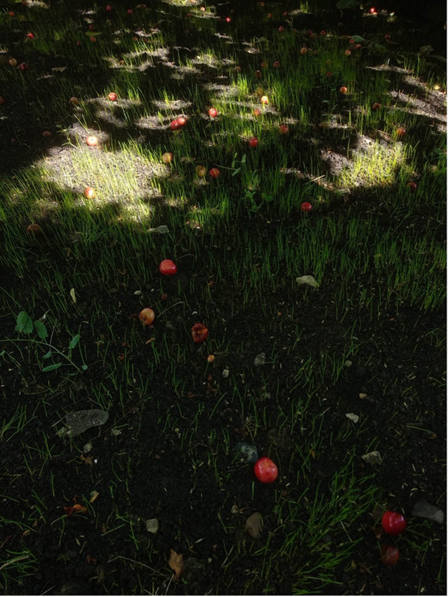 De oma van Marina vertelt ons over hoe toen zij jong was de erfscheidingen werden aangegeven door fruitbomen. Inmiddels zijn die grotendeels vervangen door hekken die, net als tegenwoordig haast overal ter wereld lijkt te gebeuren, steeds hoger en hoger worden gebouwd. Er waren zoveel soorten kersen, zei ze, veel meer dan de twee die nu domineren. En nooit zaten er wormen in.