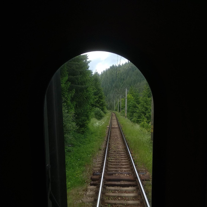 De trein rijdt inmiddels heel traag door de Karpaten. Via de open deuren vliegen gekleurde torretjes naar binnen. Een oudere man die naast mij tegen het raam geleund staat wijst me, denk ik, op een overgroeid autowrak. Ik oefen constructies met het woord urși, zodat ik hem kan aanstoten als ik een beer zie. Ik zal me niet schamen voor m’n kinderlijke enthousiasme. Ik hou van treinen.