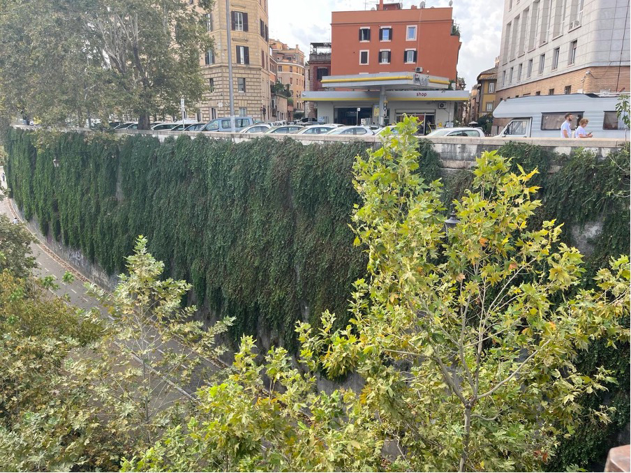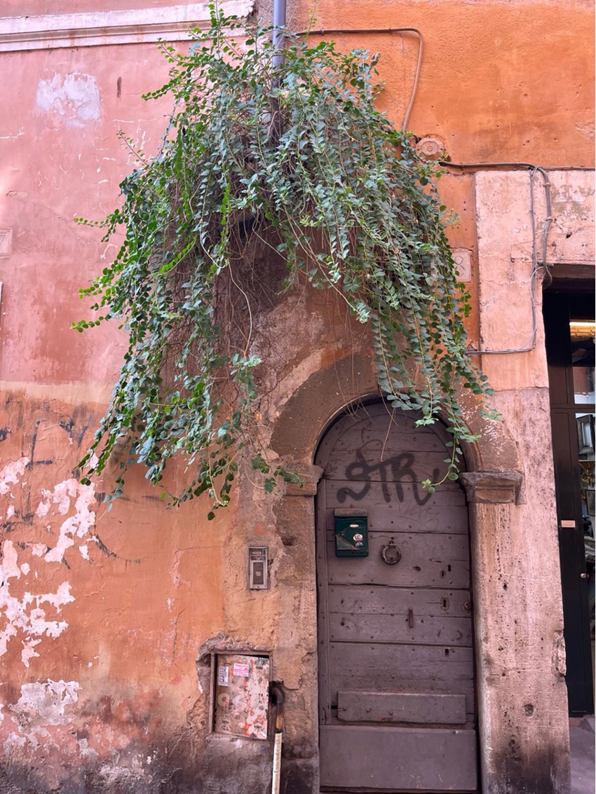 Een voetganger in Amsterdam bewandelt een ander soort pad dan een voetganger in Rome. Er zijn hier veel minder trottoirs en ze zijn vaak heel smal of zijn opengebroken door boomwortels. Je moet goed uitkijken waar je je voeten plaatst! Dit creëert een klein dilemma als ik in het centrum door de wijk San Saba loop, want ik wil zo veel mogelijk rondkijken en de sfeer in me opnemen. Genieten van de mediterrane plantengroei en de architectuur. Ja, juist ook van de gebouwen waar het stucwerk vanaf bladdert, omdat dat zo’n intrigerend effect geeft.