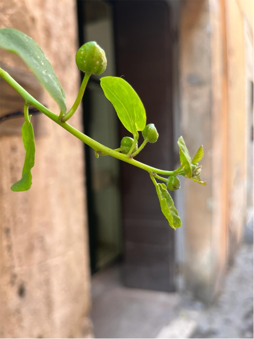 In San Saba laat ik het tafereeltje voor wat het is en loop verder. Mijn interesse is gewekt. Op andere bezoekjes aan het centrum kijk ik goed om me heen, als de conditie van de stoep dat tenminste toelaat. Opeens zie ik overal die mooie capparis spinosa groeien. Over de Aureliaanse Muur – de antieke stadsmuur – in de oude volkswijken, afhangend van de muur langs alweer een heel drukke weg, boven een eeuwenoude deur, en altijd oogt hij even sterk en strijdvaardig. Zieltogen is er niet bij, hij heeft ook niet veel nodig. Als groene draperieën reiken de ranken naar beneden. Wat een pracht.