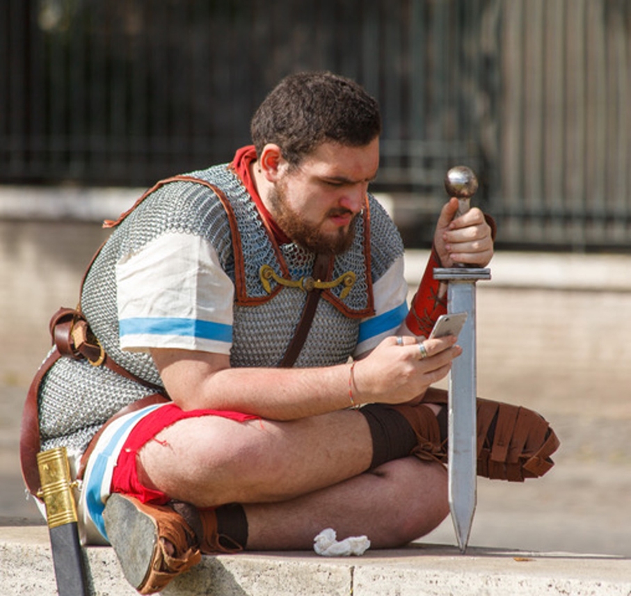 De zon is genadig vandaag en maakt alles nog net even mooier. Er zijn glanzende reflecties op helmen, diepwarme kleuren overal. Publiek en uitvoerenden laten zich meevoeren door hun geestdrift. De antieke Romein is niet meer, maar op 21 april zit er bij het Circo Massimo een perfecte replica op het gras. Alleen het mobieltje in zijn hand geeft aan dat we ons niet in 753 v. Chr. bevinden. Naast hem liggen vier schilden te blikkeren in de zon.